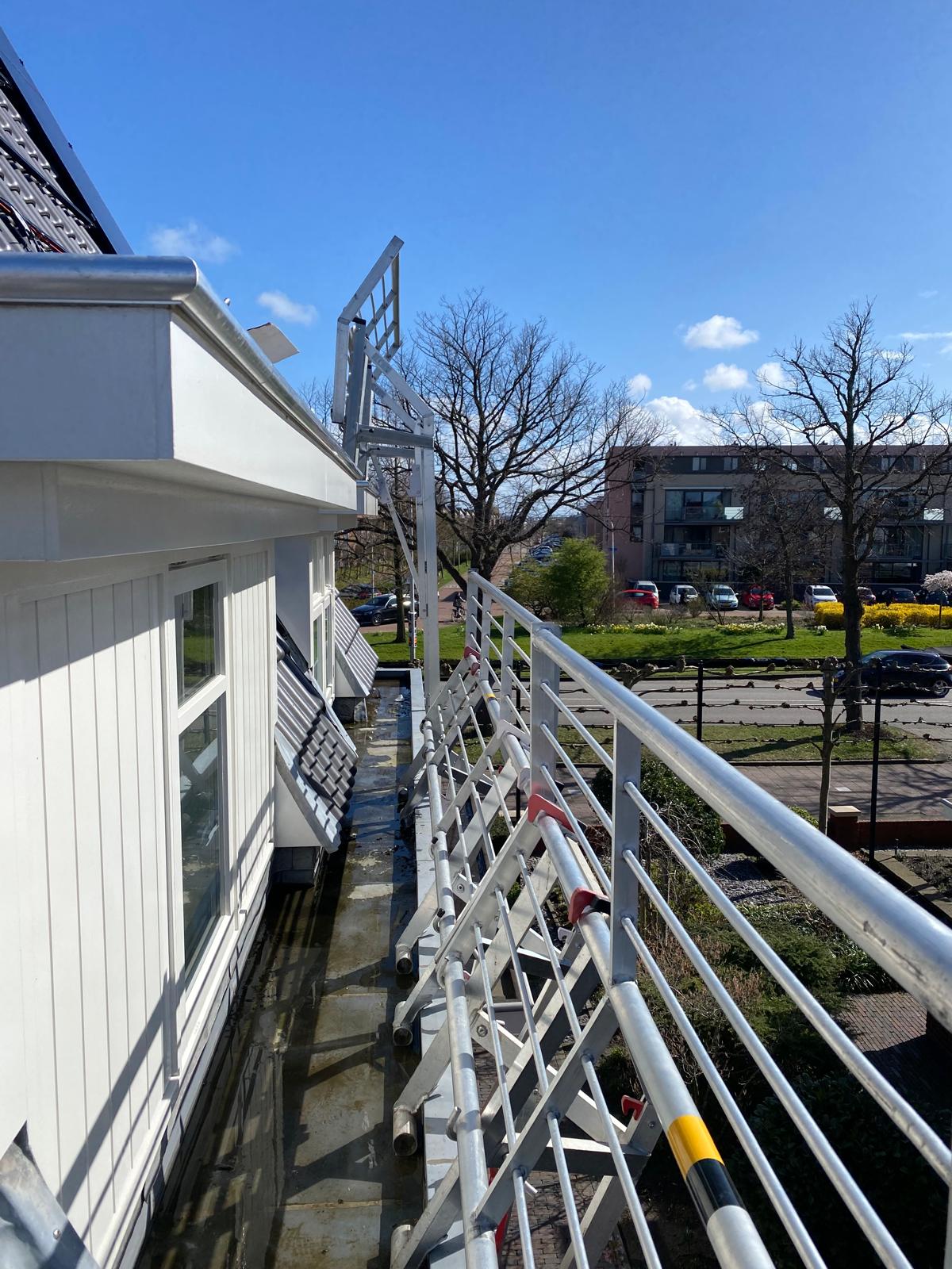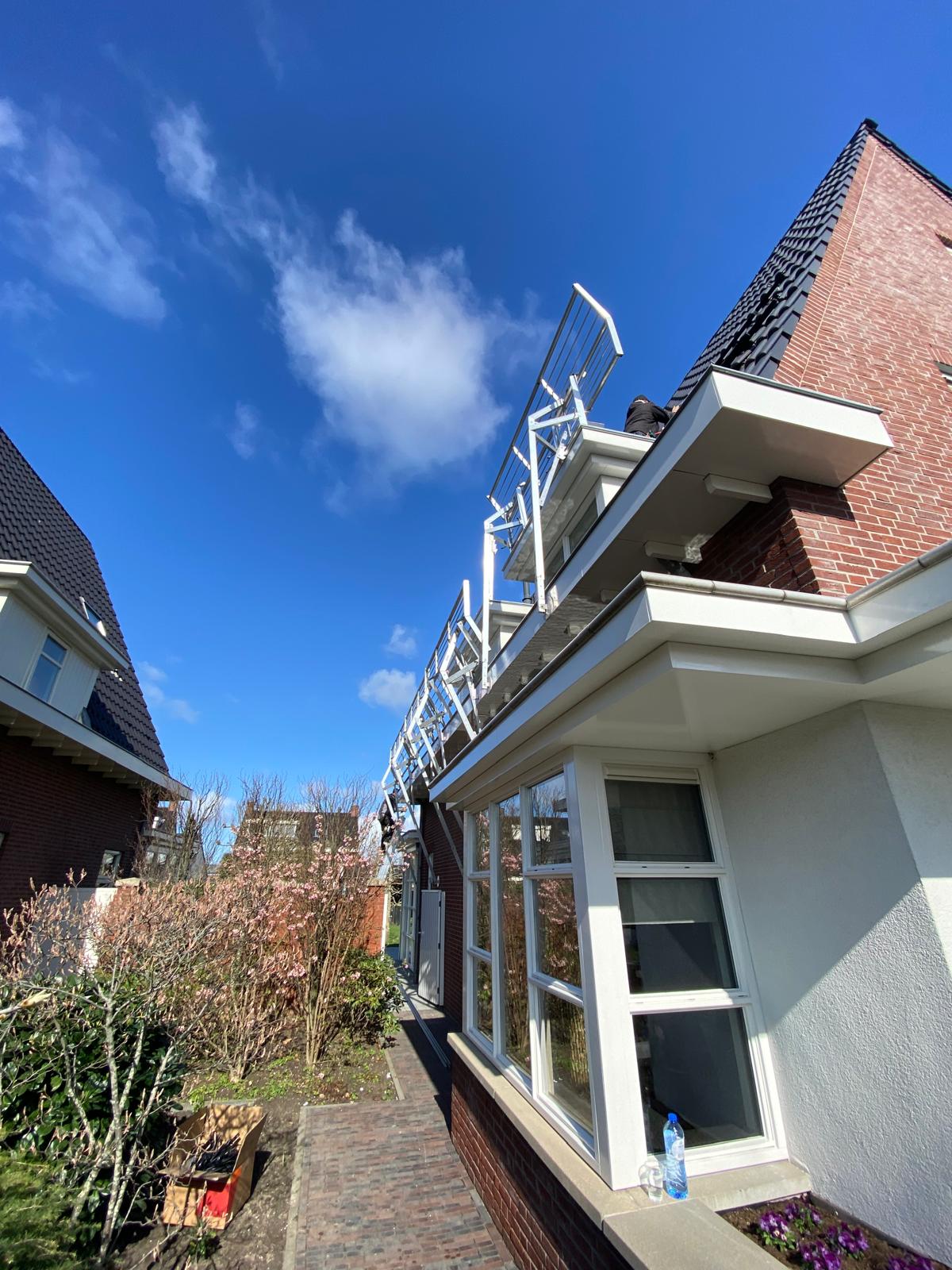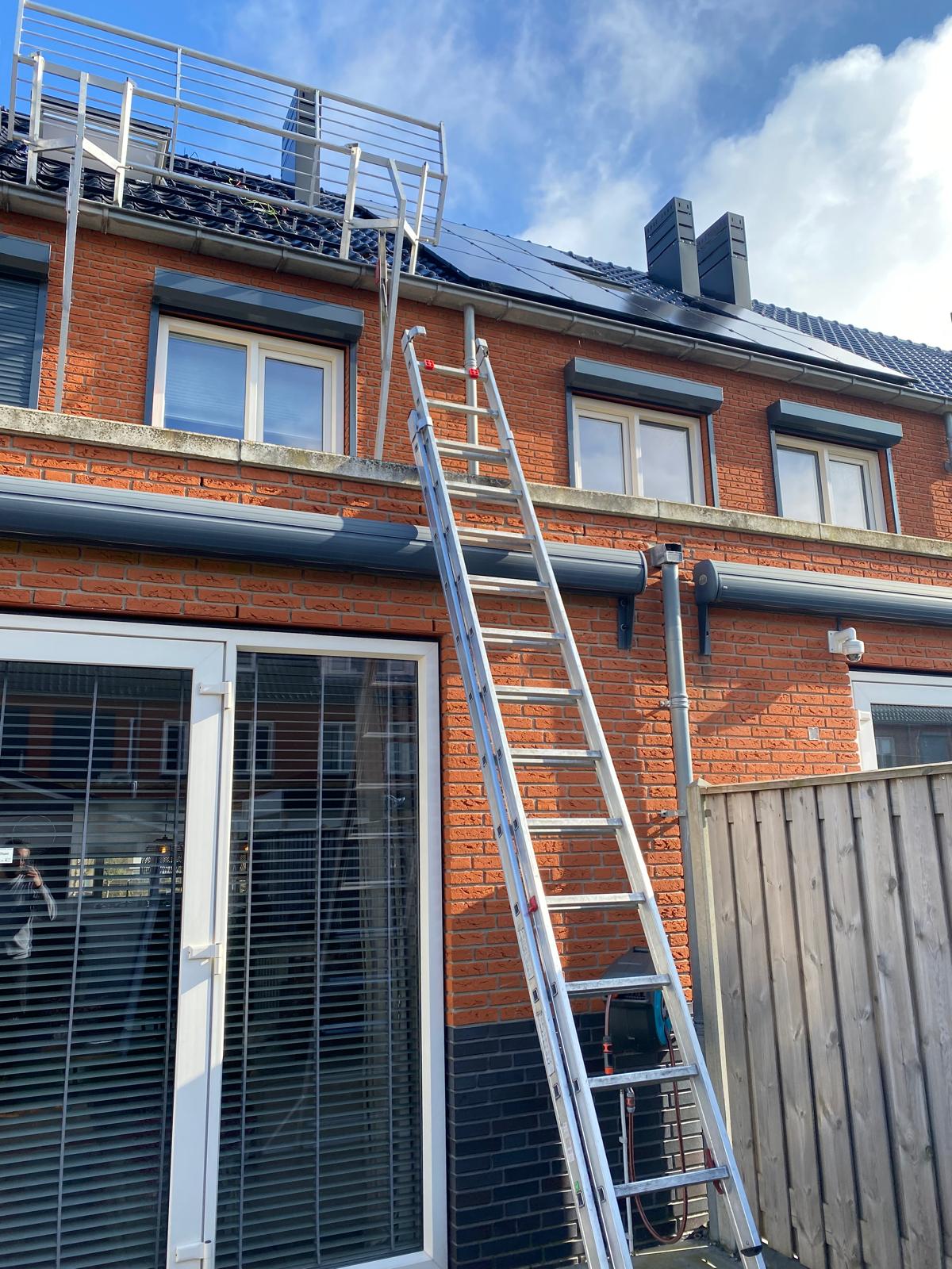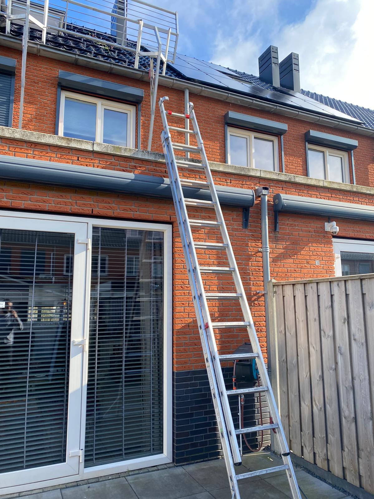 Bij een hoog dak worden de panelen met een kraan op het dak getild.