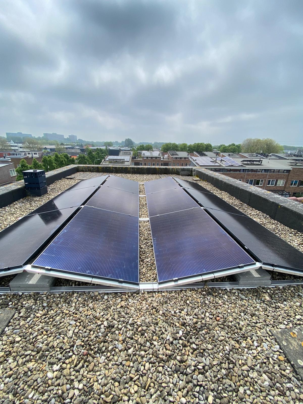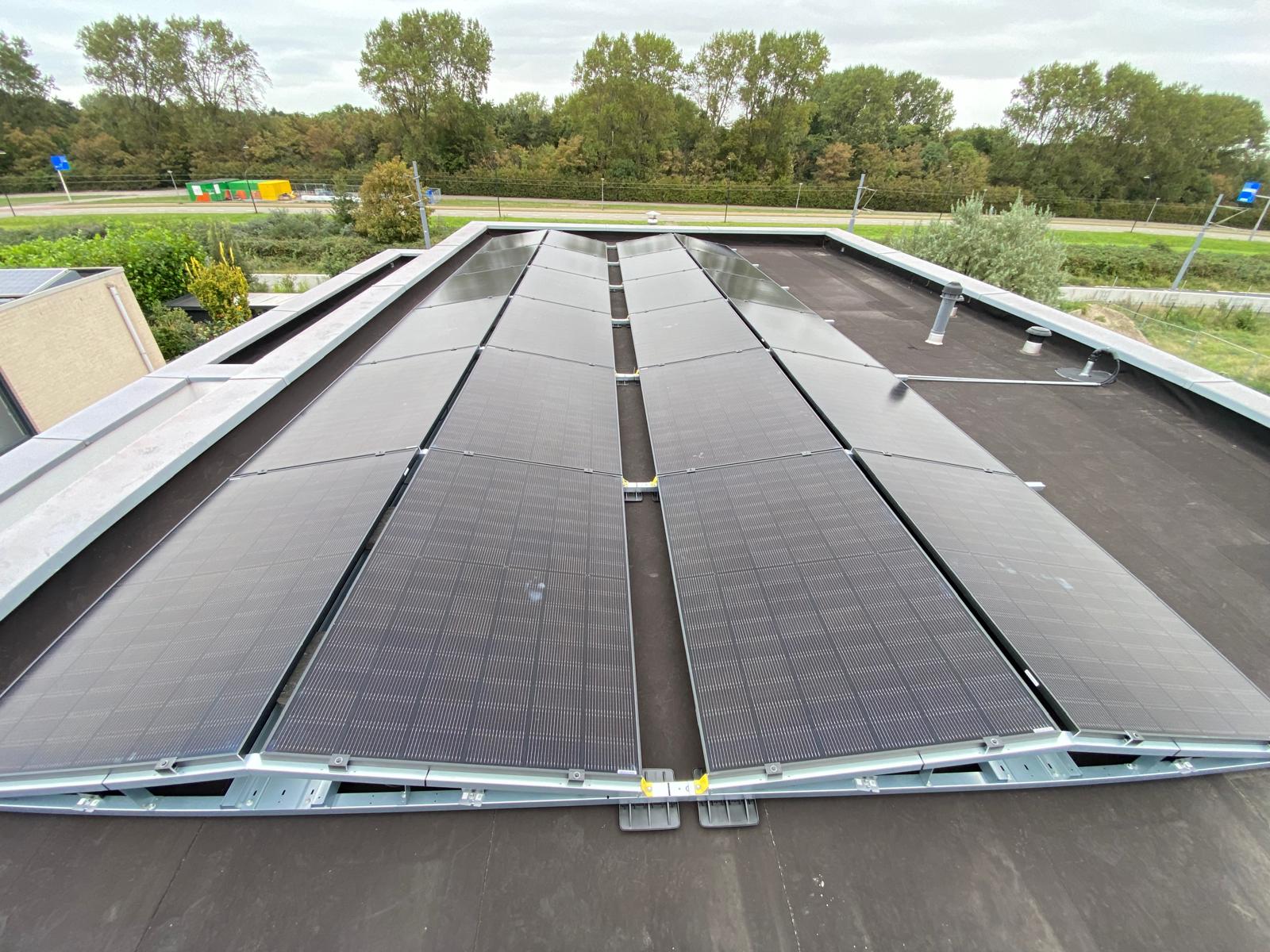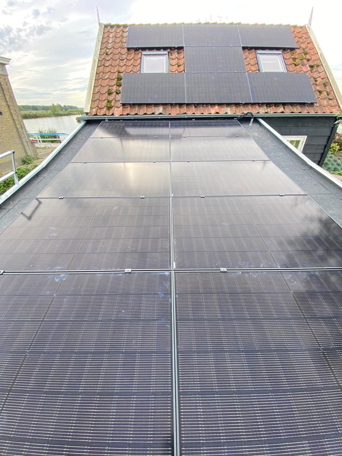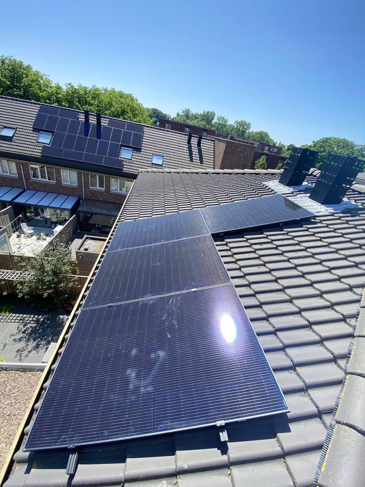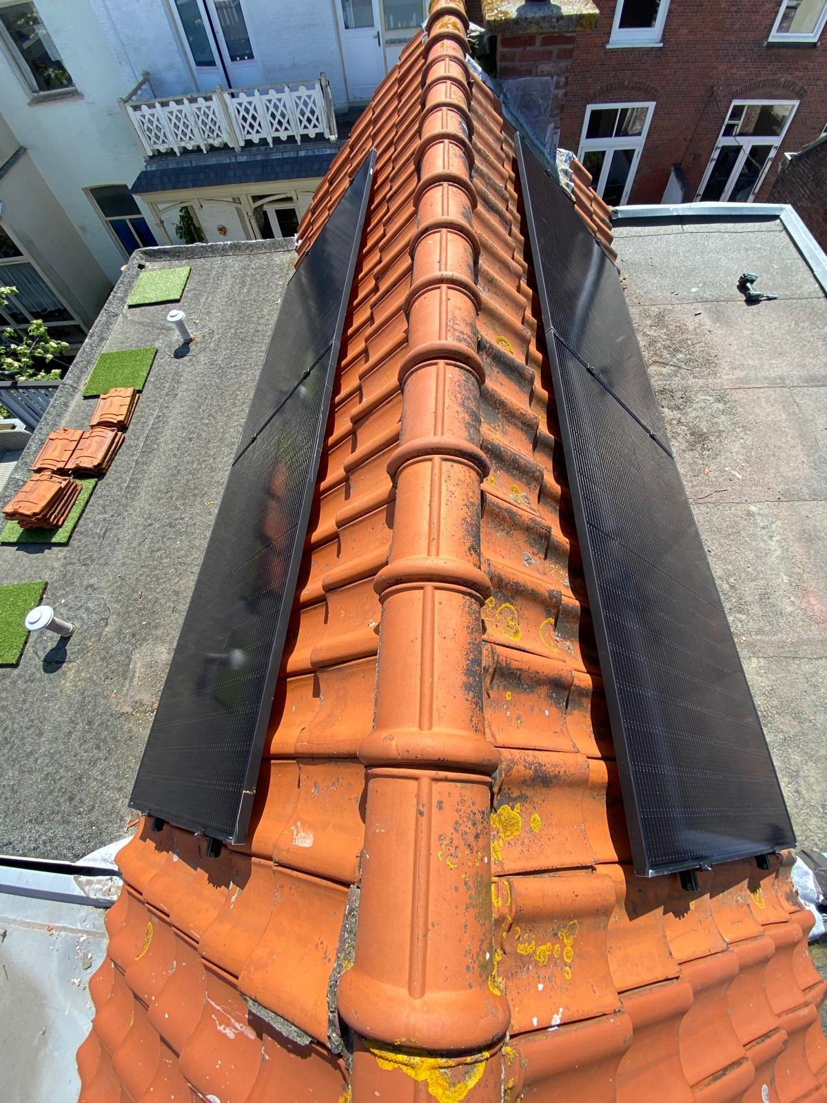 Zonnepanelen kunnen portrait of landscape worden geplaatst. Portrait betekent de lange zijde verticaal, de korte zijde horizontaal. Landscape is andersom, de lange zijde horizontaal en de korte zijde verticaal. Op dit dak zijn beide manieren toegepast. Een deel van de panelen is portrait geplaatst en een ander deel landscape. Op die manier passen hier de meeste panelen.
